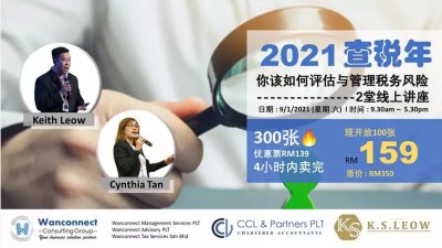2堂线上课,2位税务权威为你讲解如何有效地评估与管理你的税务风险,与此同时教你如何应对政府查税。