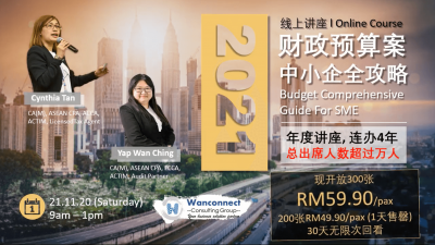 叶老师与Cynthia 老师携手举办【2021财政预算案 :中小企业全攻略】讲座 为你讲解2021财政预算案和你应如何善用这些辅助哦!同时也会和大家分享Tips!